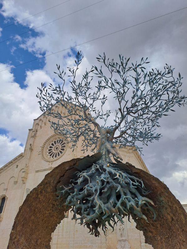 A nap nem kicsit perzselt már így a májusi délutánon sem, főleg, hogy szinte sehol egy fa sem, úgyhogy bele gondolni sem akartunk milyen lehet itt július-augusztusban. A Via Madonna delle Virtun leparkotlunk és bele vetettük magunkat a labirintusba, mert gyakorlatilag foglamunk sem volt merre megyünk és hol vagyunk. A bazilikát mondjuk nem volt nehéz megtalálni (Cattedrale di Maria Santissima della Bruna é Sant’Eustachio), viszont sok olasz templommal ellentétben ez fizetős. A bazilika előtt Andrea Roggi művész által készített életfa, amely az 1993-ban Firenzében elkövetett maffia merényletnek állít emléket. Ezzel a jelképpel egyébként Olaszország-szerte több helyen is lehet találkozni.