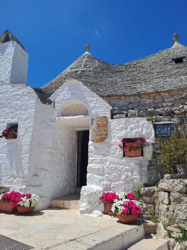 A trullók legtöbbje szuvenírbolt, illetve a turisták kíváncsiságát kihasználva, valamint a szuper selfiek érdekében extra Eurókért a boltok tetejére fel lehet mászni (legtöbbször létrán) egy panoráma fotóért. Hangulatosak a kis utcácskák a színpompás virágokkal, viszont nyáron egy 30 fokos hőmérsékletben, még ennél is több turistával…gondolja meg mindenki! A La Casa del Amore még egy említésre méltó épület, ez a Piazza del Popolon található az úttól picit bentebb. Nevét egyébként Francesco D’Amore-ról, a város első polgármesteréről kapta (nem pedig a pugliai Romeó és Juliáról), az első olyan ház 1797-ből, amely cementhabarcs felhasználásával épült. Conversano gróf uralma alól felszabadította a várost, és lehetőséget biztosított, hogy házaikat saját belátásuk szerint építsék meg a helyiek.