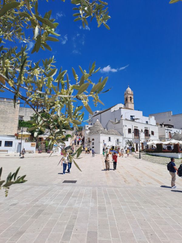 Ha az óvároson keresztül kacskaringózunk az utcákon, akkor egyszer csak egy kis parkban találjuk magunkat, ahonnét a távolban még látunk trullókat, de ezek inkább már luxus kivitelűek. Autóval kijutni a településről nem egyszerű, mivel gyakorlatilag az egész település egyirányú utcák hálózatából áll és az autóval még néhol így is nehezen tudtunk elkanyarodni. Innen hamarosan már a tengerparti sztrádán találtuk magunkat.