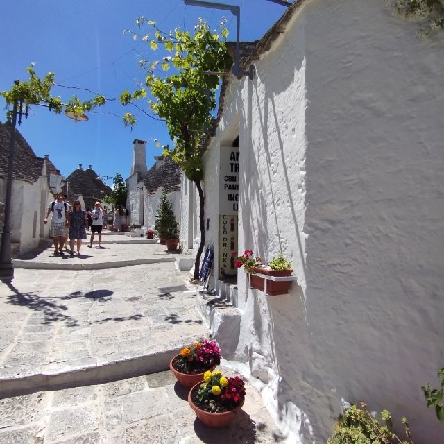 A trullók legtöbbje szuvenírbolt, illetve a turisták kíváncsiságát kihasználva, valamint a szuper selfiek érdekében extra Eurókért a boltok tetejére fel lehet mászni (legtöbbször létrán) egy panoráma fotóért. Hangulatosak a kis utcácskák a színpompás virágokkal, viszont nyáron egy 30 fokos hőmérsékletben, még ennél is több turistával…gondolja meg mindenki! A La Casa del Amore még egy említésre méltó épület, ez a Piazza del Popolon található az úttól picit bentebb. Nevét egyébként Francesco D’Amore-ról, a város első polgármesteréről kapta (nem pedig a pugliai Romeó és Juliáról), az első olyan ház 1797-ből, amely cementhabarcs felhasználásával épült. Conversano gróf uralma alól felszabadította a várost, és lehetőséget biztosított, hogy házaikat saját belátásuk szerint építsék meg a helyiek.