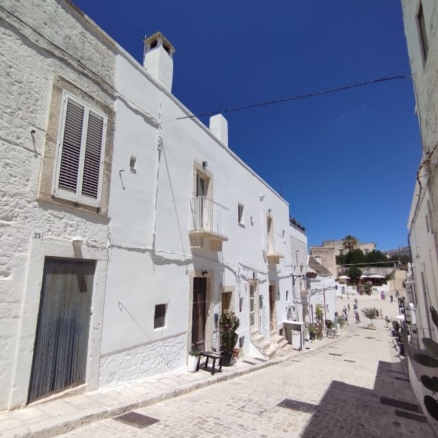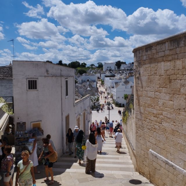 Ha az óvároson keresztül kacskaringózunk az utcákon, akkor egyszer csak egy kis parkban találjuk magunkat, ahonnét a távolban még látunk trullókat, de ezek inkább már luxus kivitelűek. Autóval kijutni a településről nem egyszerű, mivel gyakorlatilag az egész település egyirányú utcák hálózatából áll és az autóval még néhol így is nehezen tudtunk elkanyarodni. Innen hamarosan már a tengerparti sztrádán találtuk magunkat.