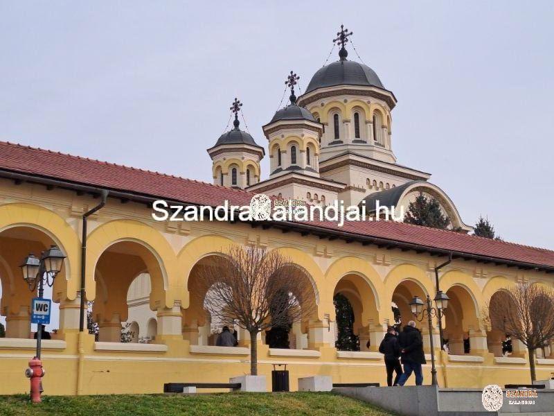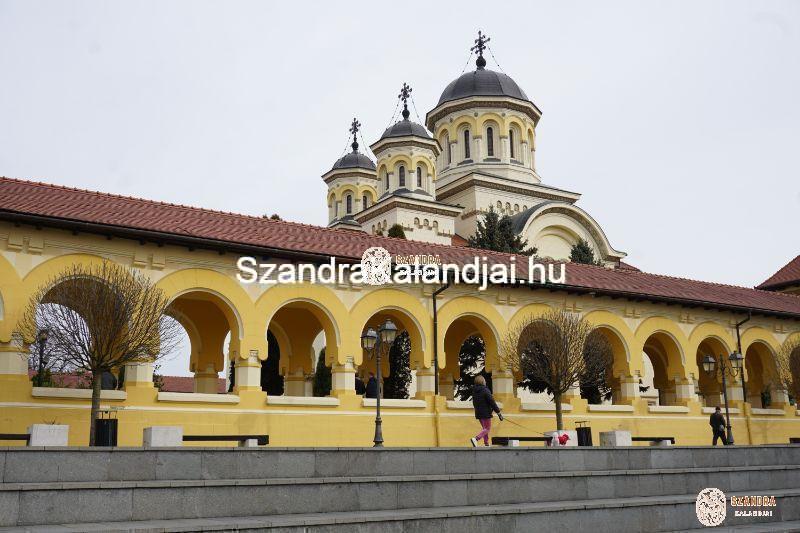 Az erőd falain belül parkoltunk le, rögtön az ortodox ún. „Koronázási Katedrális” mögött. Épp vasárnap délelőtt volt, amikor is misét tartottak mind az ortodox, mind pedig a mellette lévő római katolikus templomban. A lakosság csak kis százaléka magyar, többségében románok lakják, akik ortodox hívők és meglehetősen vallásosak.
