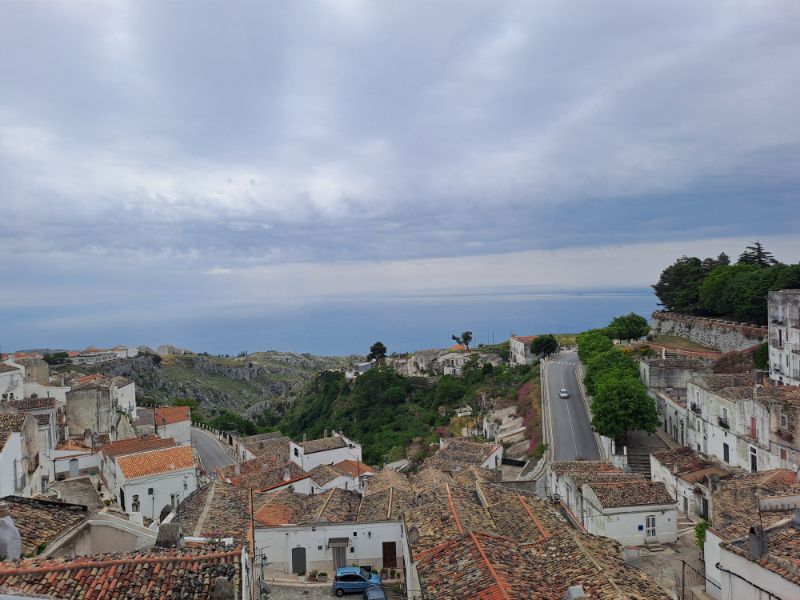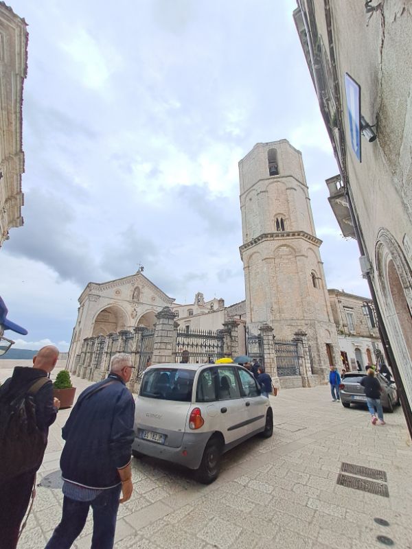 Reggel elindultunk azon az autóúton, amit én már napok óta félve nézegetek, hogy ott tulajdonképpen vezet-e út felfelé és ha igen, elfér-e két autó is, vagy csak egy fél? A térképen gyakorlatilag úgy nézett ki az út, mintha odafirkáltak volna valamit, viszont a hegyen található egy nem is oly kicsi település – 14 ezer lakosú – Monte Sant’Angelo, ahova Anya nagy vágya volt eljutni. Ha pedig Anya kéri, akkor Apa teljesíti is. Az út izgalmas, annyira nem keskeny, de azért ne jöjjön lehetőleg busz szembe….amikor pedig meglátod, hogy tegnapelőtt-előtt még ott lent sétálgattál Manfredoniában, ami most egy pötty onnan fentről nézve, akkor azért egy visítás kicsúszna a szádon.