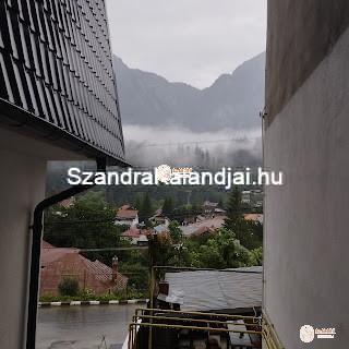 Ami  a szállást illeti, kellemes berendezés, csak az ablakon ki ne nézz, választhattál, hogy az építkezést nézed, vagy a romos épületet a szomszédban. Takarítás előzőleg volt is, meg nem is (az előző vendég kávéja, szemete még ott maradt), de próbáltuk gyorsan túltenni magunkat rajta és azon is, hogy végül nincs sem erkély, sem terasz. Nekem más fogalmam van az erkélyről, náluk ez egyenlő volt a lépcsőfeljáróval, de onnan legalább látni lehetett a hegyeket részben. (Azt hittük egyébként a szálláskeresés előtt hogy Románia olcsó hely, de tévedtünk. Az út során kiderült, hogy nem csak a szállás drága, hanem gyakorlatilag minden.) Az egyetlen probléma a szálláson az volt, hogy az utolsó este a konyhában a csempe  1/6-a magától leesett a falról.
