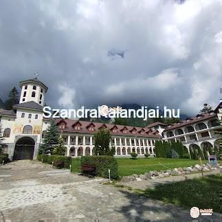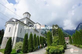 Ott jártunkkor épp szertartás zajlott, a pópa kántált az ikonokból álló fal, az ikonosztáz előtt. A szokásoknak megfelelően a szertartás végén egyrészt megcsókolják az ikonokat (Covid idején volt is baj ebből), másrészt a kis kockákra vágott szentelt kenyérből esznek a hívők, illetve az épület előtt a tartályokban lévő szentelt vízből isznak. A kolostor a hegy lábánál található szép, és egyébként csendes környezetben, ha épp nem építkezés zajlana, a zarándok szállásokat bővítik egy újabb épülettel (Már jelenleg is 100 főt el tudnak szállásolni, ha nem vagy egyedülálló nő, ők ugyanis nem szállhatnak itt meg). Kifelé a kapu mellett található egy kisebb épület, ahol hosszú, sárga méhviasz gyertyákat gyújtanak a hívők, kifejezik tiszteletüket az ikonok előtt. (Itt nem a halottaikért gyújtják, illetve a gyertyát nem illik otthonról hozni, mert az itt megvásárolt gyertyák adományok az egyháznak.) Érdekesség, hogy az orthodox kereszteken megfigyelhető alul egy koponya és csontok, ez az első férfi, Ádám koponyáját és csontjait jelképezi. Sok helyen vannak hatalmas keresztek az út mentén, főleg Temesvár környékén, az ortodox vallást hirdetik.