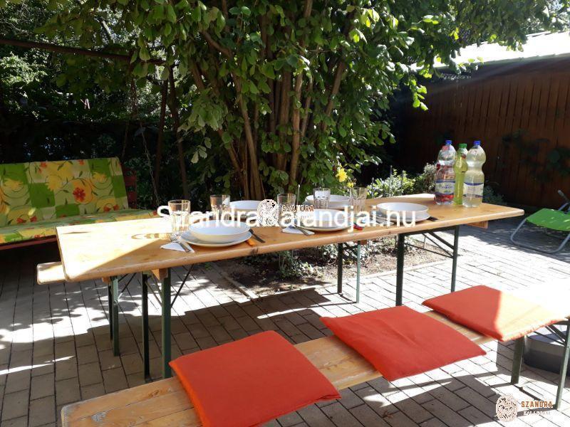 A zárt udvarban 2-3 autó részére ingyenes parkolás biztosított árnyékos helyen. A kertben bográcsozási, grillezési lehetőség áll a nyaraló vendégek rendelkezésére. Ehhez bográcsot, grillrácsot, valamint 1-2 adag fát is adunk.