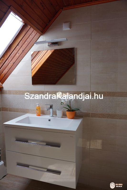 Emelet: 3 szoba, ebből egyik erkélyes, 1 fürdőszoba zuhanyzóval és WC-vel, a folyósón 1 db klíma, amivel a felső szintet hűteni lehet. (A házban központifűtés is van.)